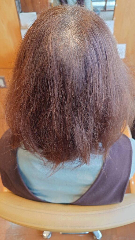 カラーシャンプーを傷んだ髪に使うとなぜ「ムラ」になるのか、それは染料を吸い込みすぎる部分と、染まらない部分が出てくるからです。
