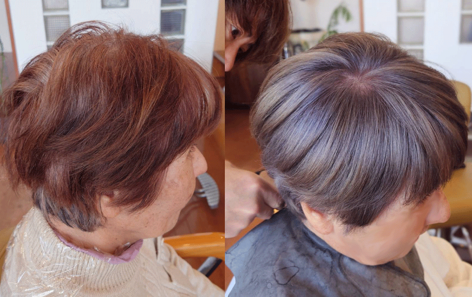 【全体ブリーチ+ヘアカラー】ほぼ白髪|今までのヘアカラーをリセットして白髪が目立たない髪色に