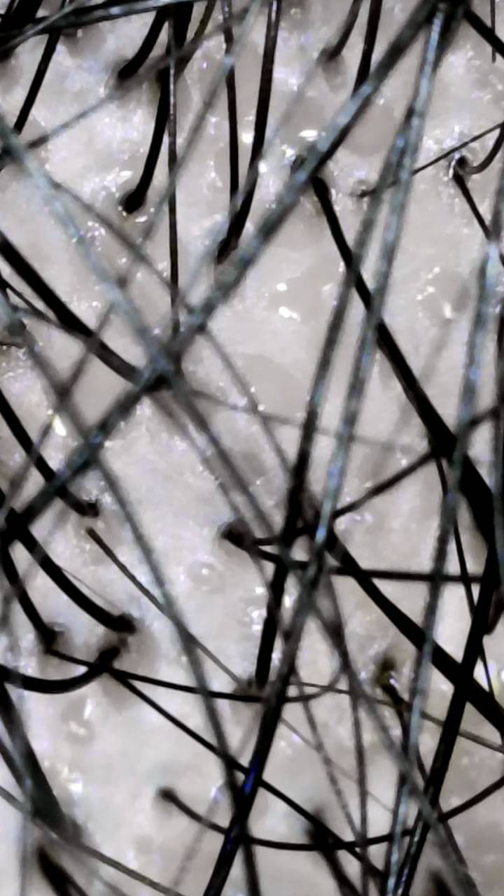 施術前は少し頭皮に赤みがあり、毛穴に皮脂のつまりも見られます。施術後は頭皮の色は正常な青白さを取り戻し、毛穴汚れもなくなっています。